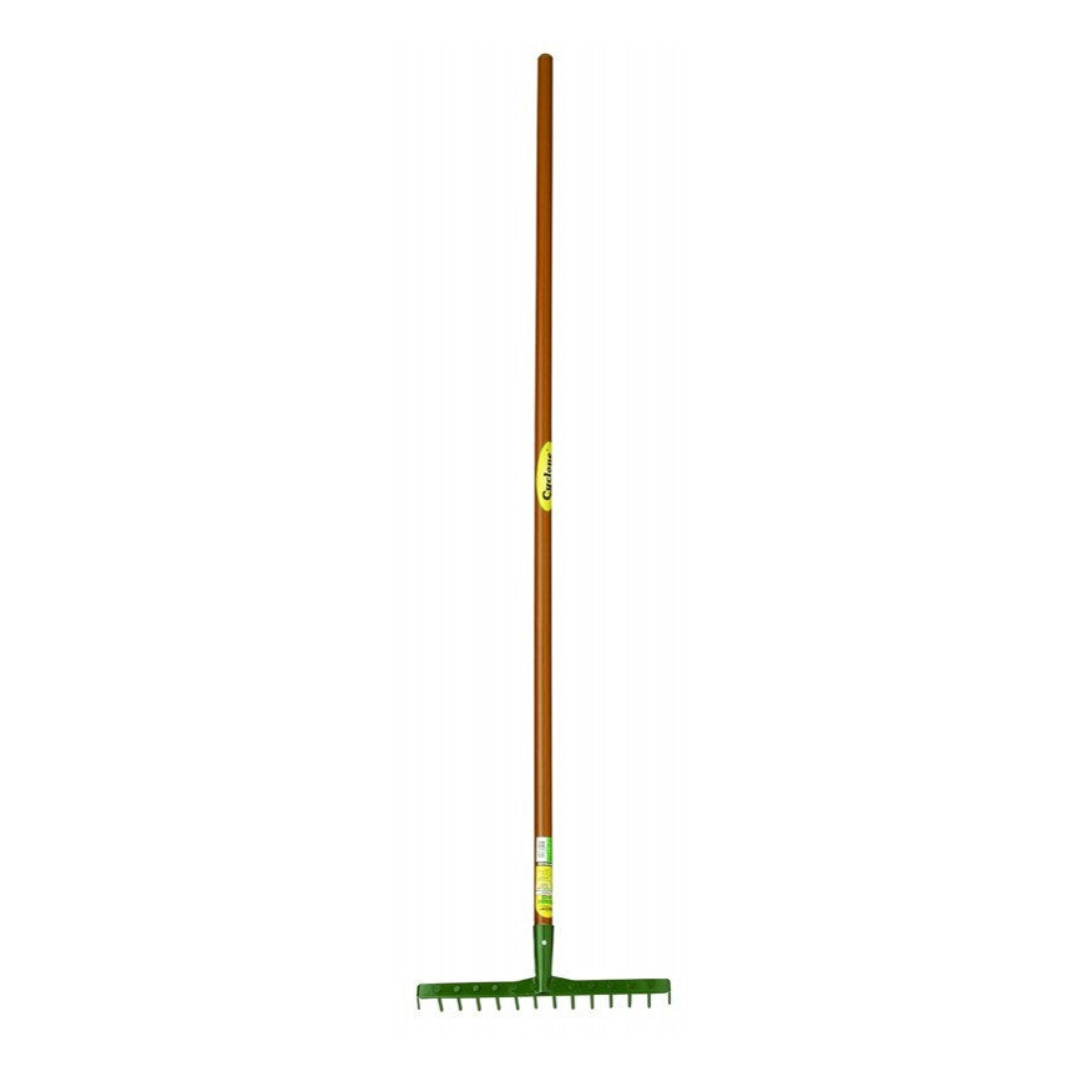 Fitted with a 150cm long hardwood handle, the rake provides excellent strength, balance, and reach. The smooth finish and natural grip make it comfortable to use for extended periods. -