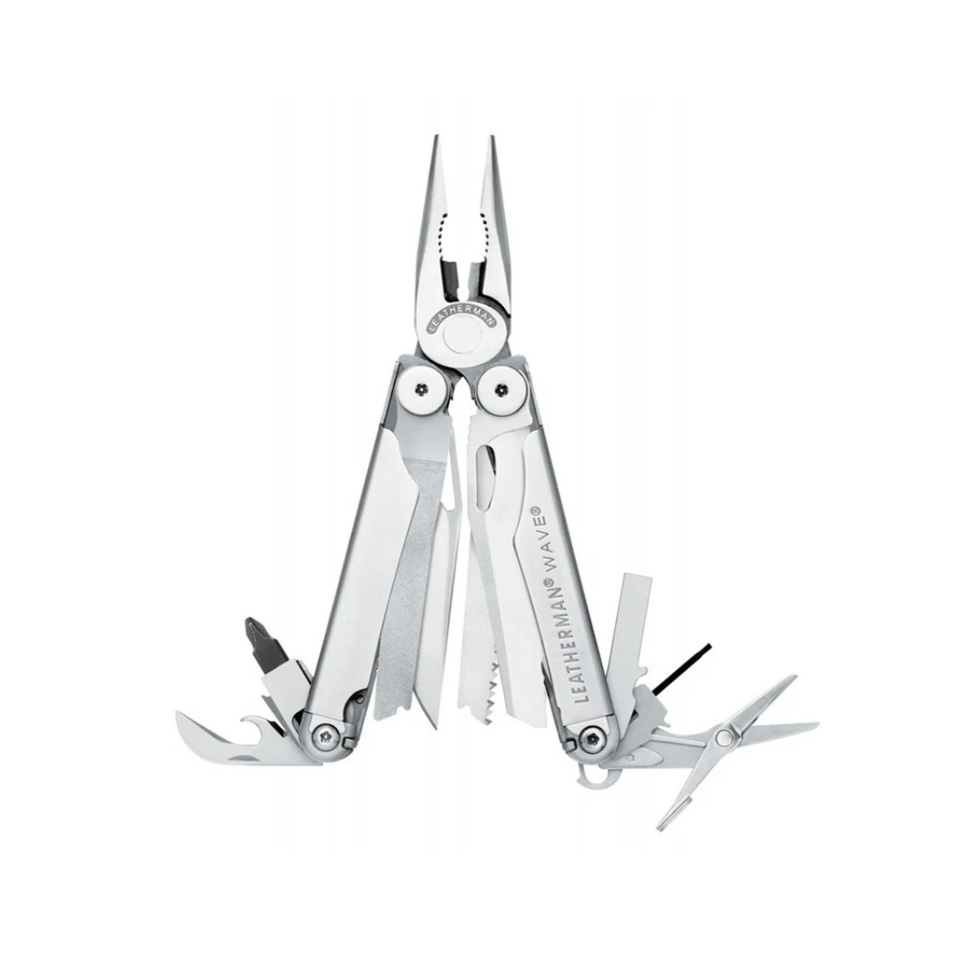• 14 essential tools including pliers, wire cutters, scissors, knives, screwdrivers, package opener, and more